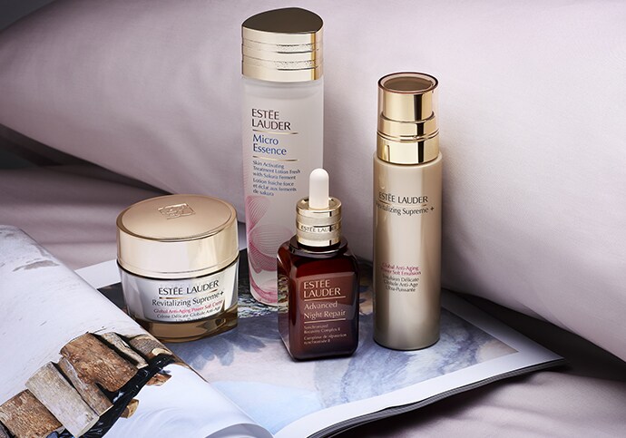 Prepara la piel con nuestras gamas de tratamientos y luego apuéstalo todo por un maquillaje nude o por un estilo sofisticado. Descubre o vuelve a disfrutar de los beneficios específicos de nuestro dúo icónico para una tez perfecta: el sérum n.º 1 Advanced Night Repair y la base de maquillaje más vendida, Double Wear.