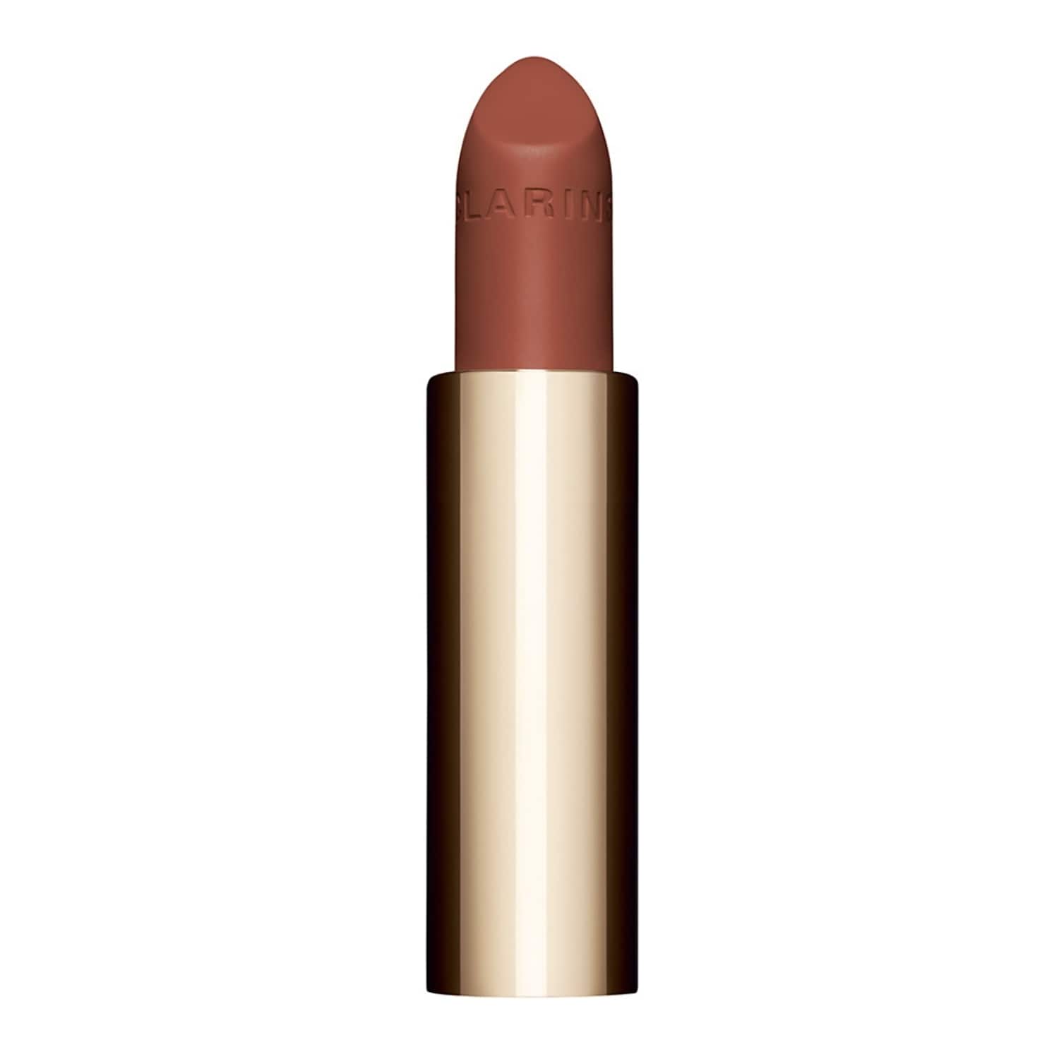Joli Rouge Velvet es la barra de labios con mayor pigmentación de Clarins, diseñada para proporcionar un color intenso y mate luminoso, sin comprometer la comodidad ni la hidratación. Su fórmula enriquecida con el complejo [HYDRA+] contiene perlas vegetales de ácido hialurónico y ceramidas, que aseguran una hidratación profunda, mientras que el aceite de camelia bio y la manteca de karité bio nutren y protegen los labios. Gracias a su alta concentración de pigmentos, el color se mantiene vibrante e infalible hasta por 8 horas, dejando una sensación ultracremosa y confortable que dura hasta 12 horas. Con un 87% de fórmula de tratamiento y 82% de ingredientes de origen natural, Joli Rouge Velvet cuida los labios, dejándolos suaves y bonitos incluso al natural. Disponible en 16 tonos exclusivos, meticulosamente seleccionados para realzar cada tono de piel.Código del producto: 774075
